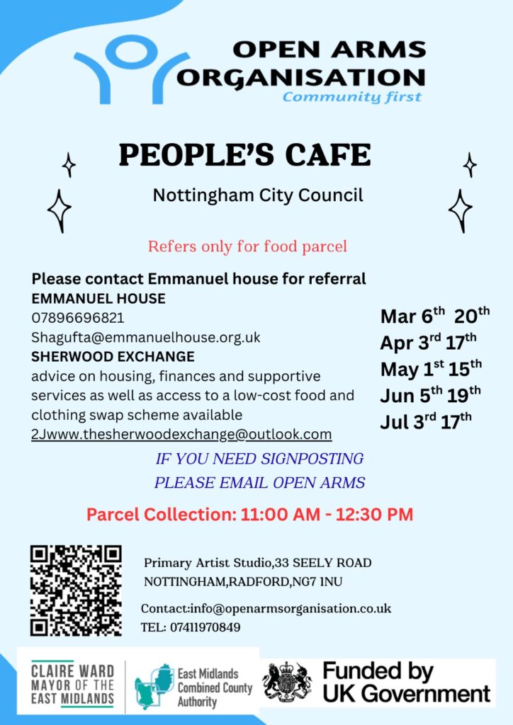 The Open Arms Organisation invites you to the People’s Cafe for a free Food Parcel Collection Event.